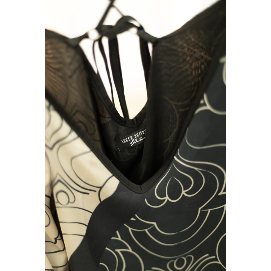 Marca: Lança Perfume Tamanho: Cor: Preto e nude Material: Cetim Condição: Bom estado (Alguns fios puxados conforme mostrado na foto)